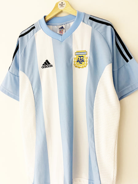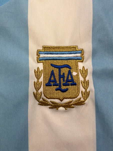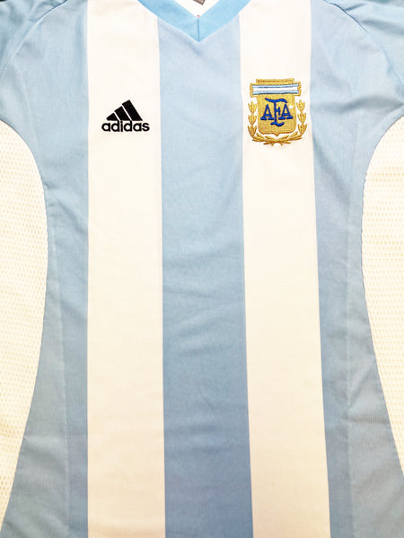 INFO - Home shirt as worn at the 2002 World Cup as Argentina failed to advance past the group stages by just one point. Players in the squad included Veron, Crespo, Pochettino, Batistuta, Simeone