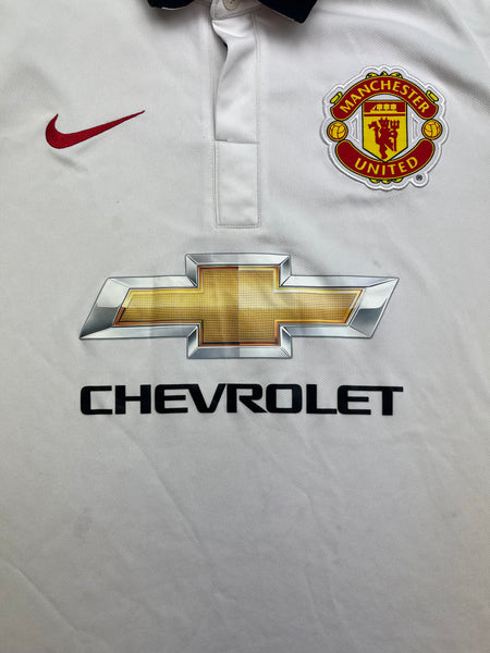 INFO – Away shirt as worn as Man Utd finished 4th in the Premier League under new manager Louis van Gaal. Players in the squad included Rooney, Mata, Van Persie, Blind, Smalling, Valencia