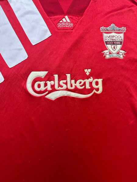 INFO - Home shirt as worn by Liverpool in their centenary season as they finished 6th in the Premier League under manager Graeme Souness. Players in the squad included Whelan, Wright, Barnes, Molby, Rosenthal, Rush