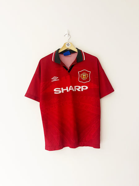 INFO - Home shirt as worn as Man Utd won the ‘95/96 Premier League, pipping Newcastle to the title by 4 points. Players in the squad included Cantona, Keane, Irwin, McClair, Pallister, Ince