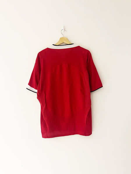 INFO - Home shirt as worn as Man Utd finished 3rd and 2nd in respective Premier League campaigns, and won the 2005/06 Carling Cup. Players in the squad included van Nistelrooy, Giggs, Rooney, Ronaldo, Ferdinand, Fletcher