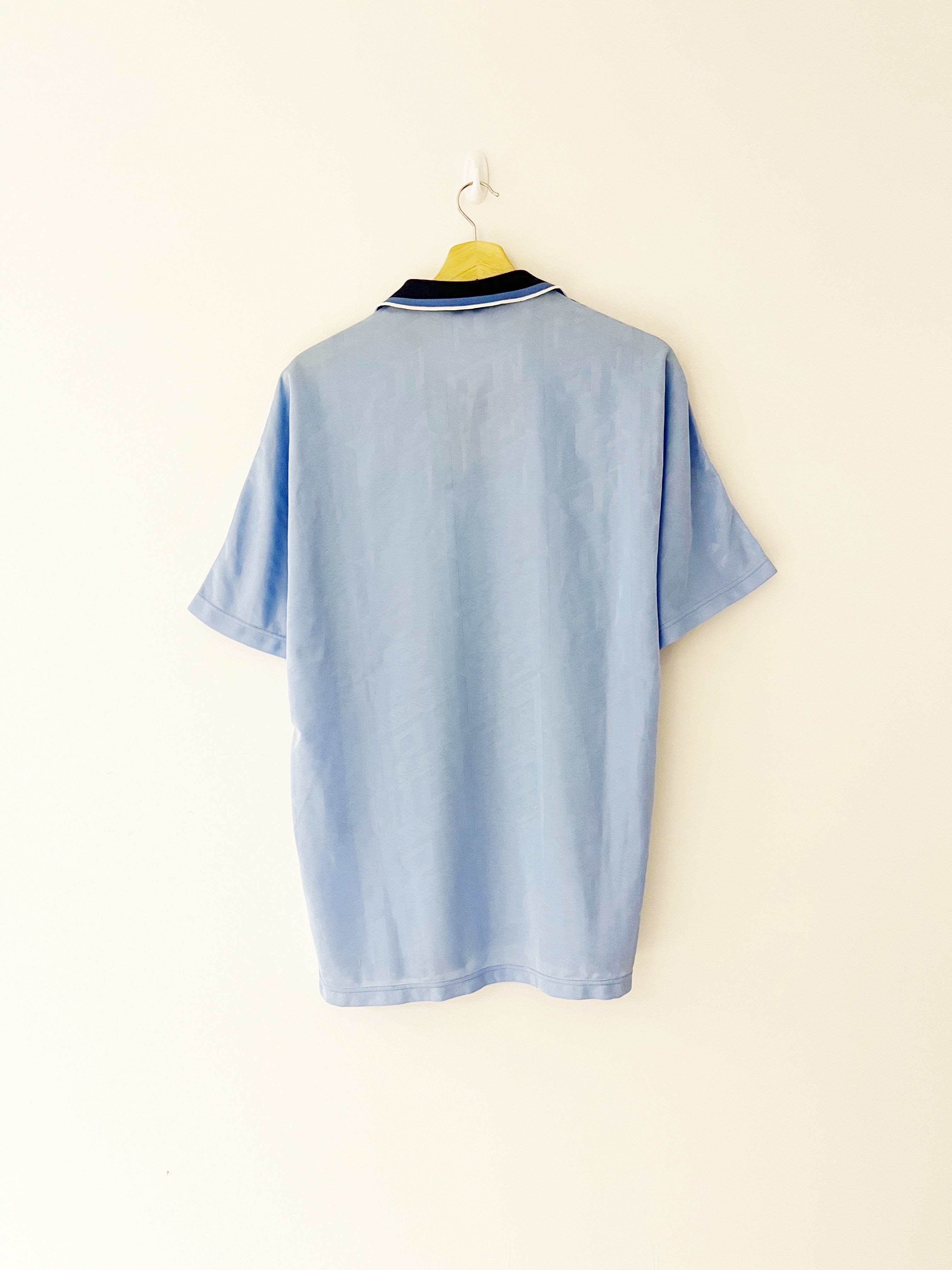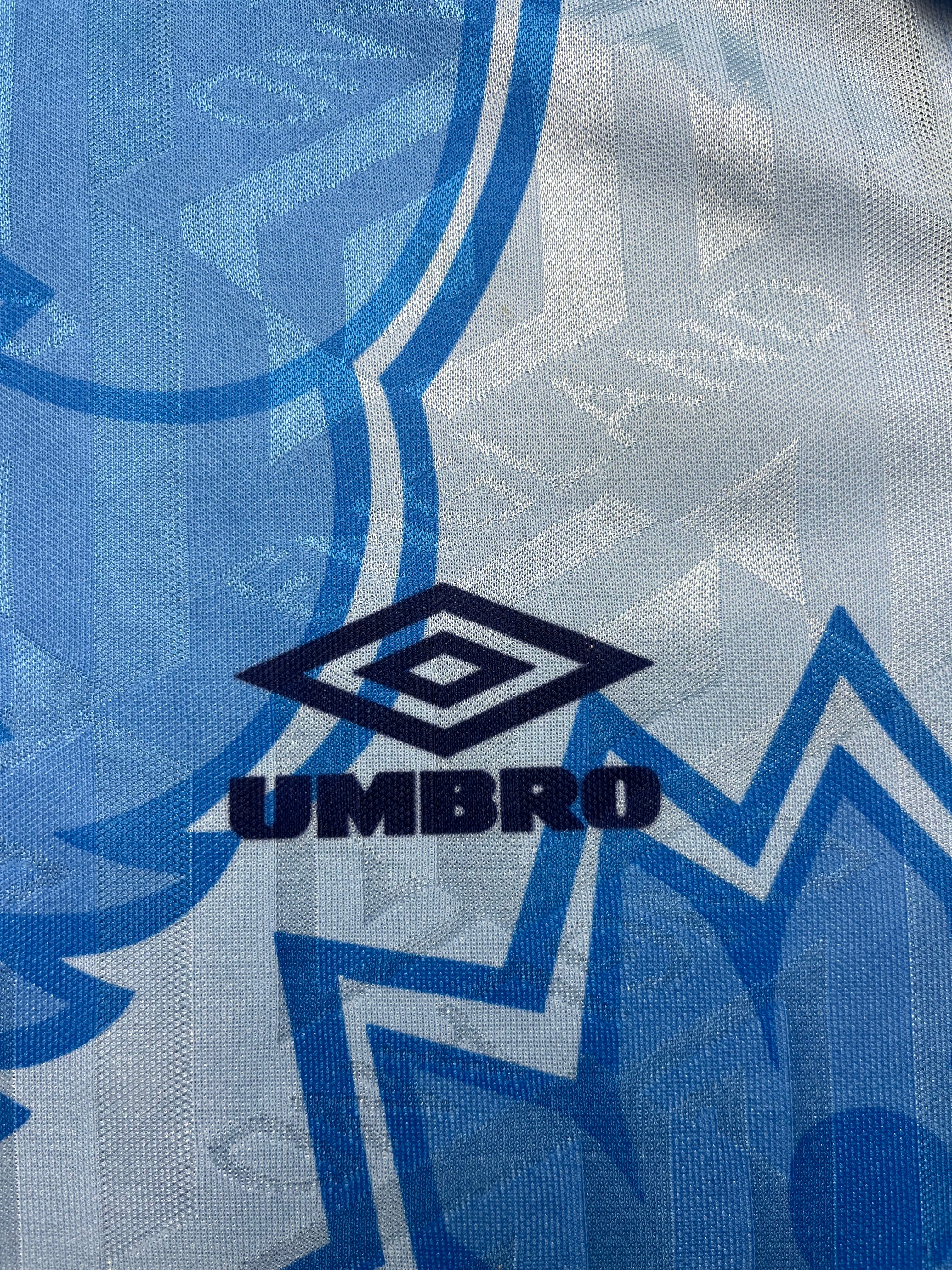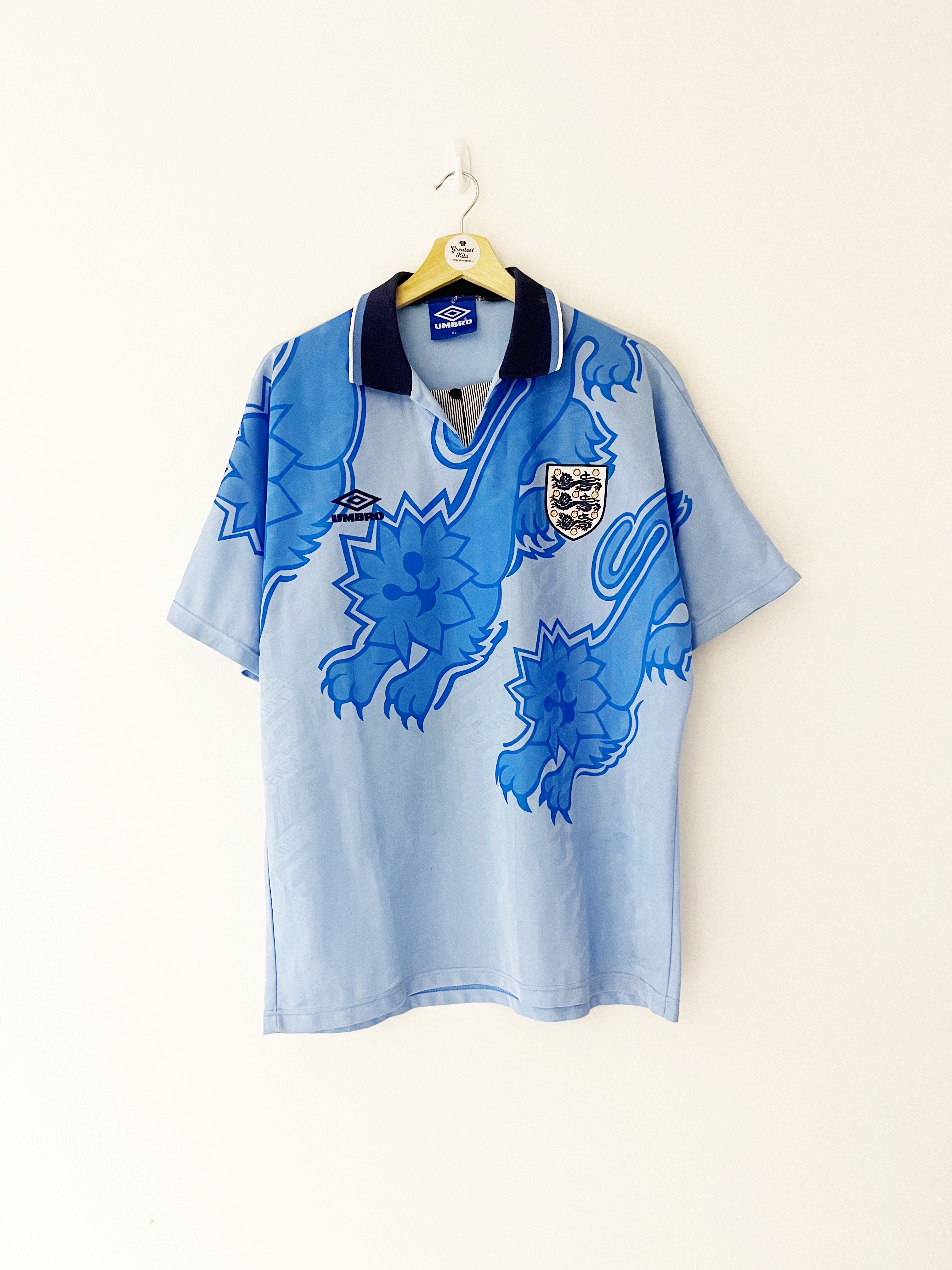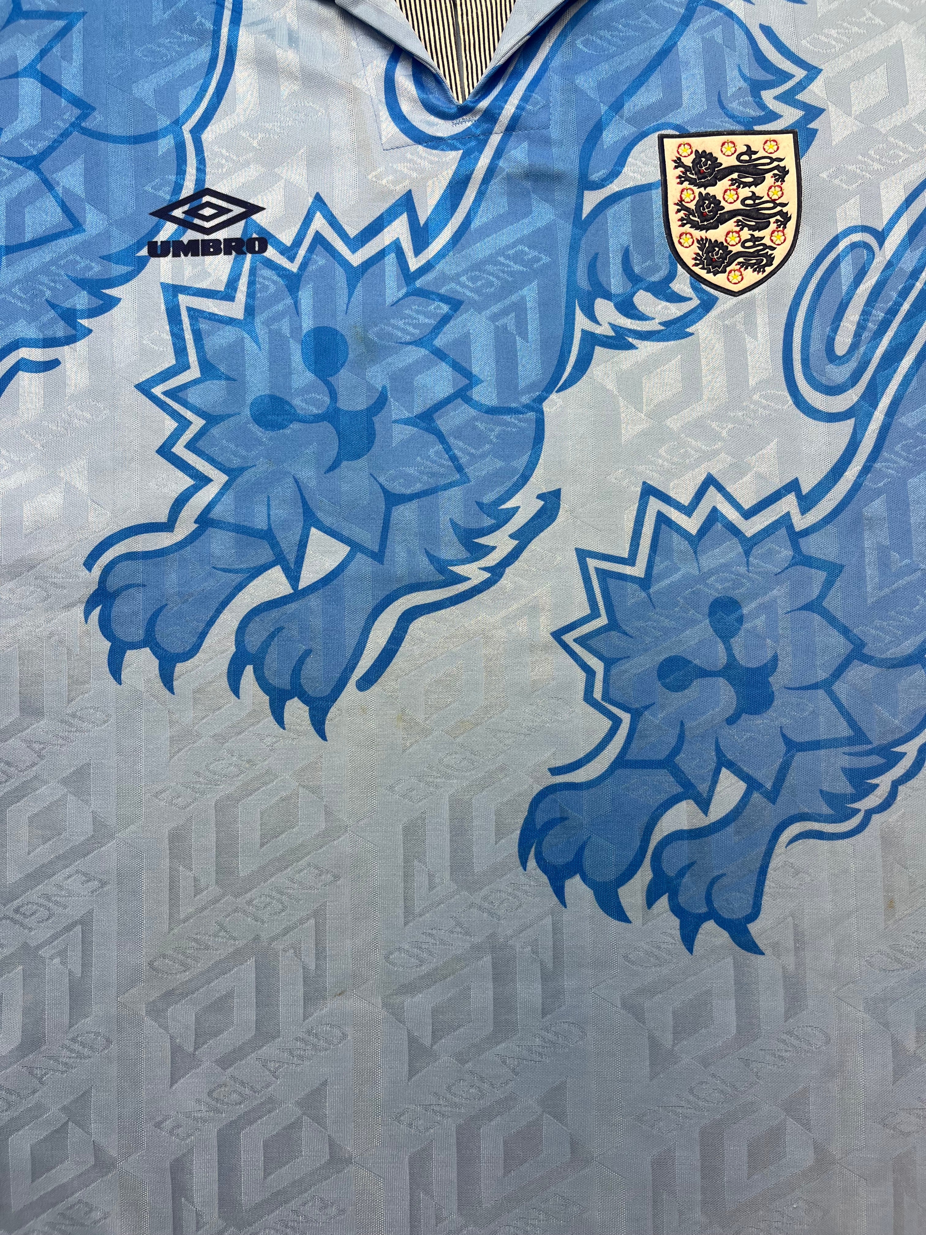 INFO – Rare third shirt that was only ever worn twice by England, both time in friendly matches against Spain and Czechoslovakia. Players in the squad included Waddle, Platt, Pearce, Shearer, Lineker