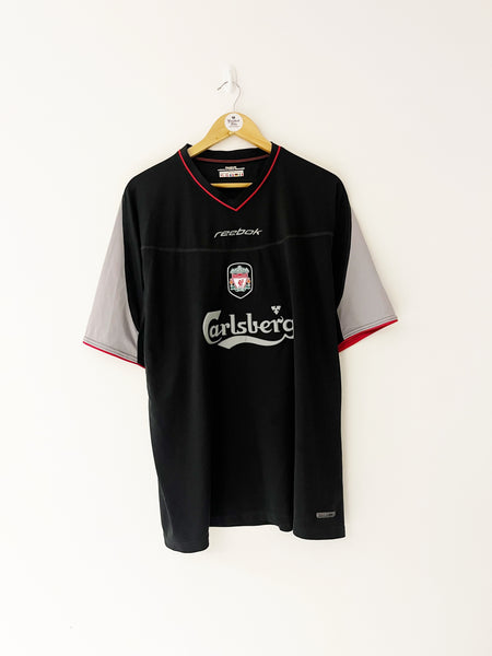INFO - Away shirt as worn as Liverpool finished 4th and 5th in respective Premier League campaigns under manager Gerard Houllier. The side won the 2002/03 Worthington Cup, beating Manchester United 2-0 in the final. Players in the squad included Gerrard, Hyypia, Baros, Heskey, Hamann, Riise