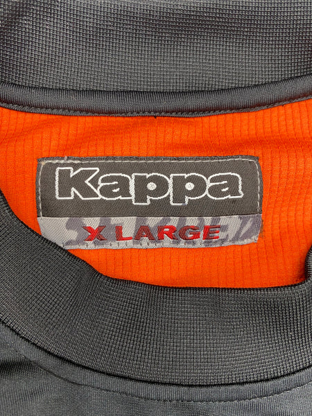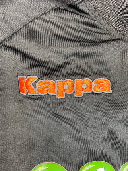 CONDITION – Very good. Nice material feel with bright colours. Club crest and main Kappa logos are perfect. Sponsor is great. Slight cracking to Kappa sleeve detail (see final photo for a close up). Overall 8/10