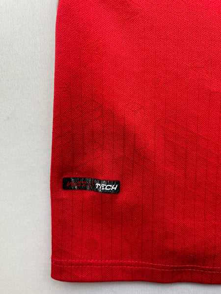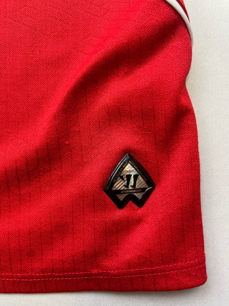 CONDITION - Very good. Nice material feel with bright colours. Badges and player print are perfect. Heavy cracking to the sponsor (see final photos for a close up). Overall 7/10