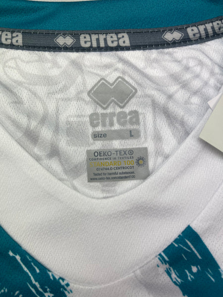 FEATURES – Club crest heat pressed, Errea logo is stitched, sponsor is printed within the material