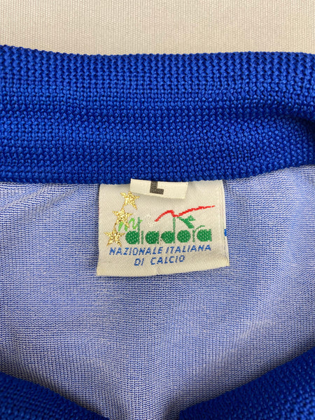 INFO – Home shirt as worn by the hosts of the 1990 World Cup. The side reached the semi finals, losing to Argentina on penalties. Players in the squad included Bergomi, Baresi, Schillaci, Ancelotti, Altobelli, Baggio