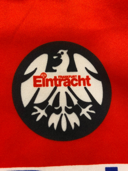 INFO - Rare long sleeve Home shirt as worn as Frankfurt finished 5th in the Bundesliga and reached the quarter-finals of the UEFA Cup. Players to wear the shirt include Guadino, Binz, Yeboah, Okocha, Doll