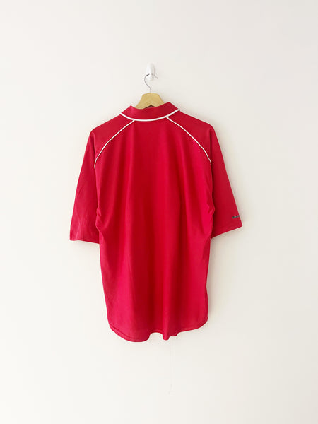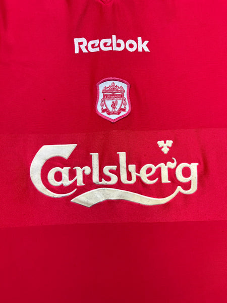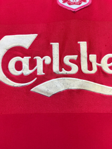 INFO - Home shirt as worn during the famous treble winning season when the side won the FA Cup, Worthington Cup and UEFA Cup. Players in the squad included Smicer, Owen, McAllister, Anelka, Heskey, Hyypia