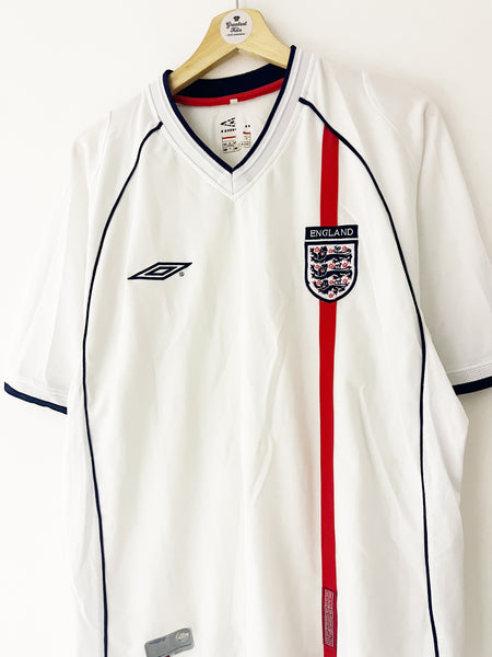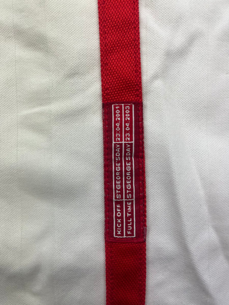 INFO – Home shirt as worn by England under new manager Sven-Goran Eriksson and most famously remembered in the incredible 5-1 win over Germany in Munich. Players in the squad included Beckham, Campbell, Owen, Gerrard, Scholes, Heskey