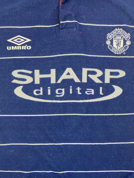 INFO – Away shirt as worn as Man Utd retained the Premier League, finishing 18 points ahead of Arsenal and setting a new record of 97 goals scored. Players in the squad included Beckham, Cole, Giggs, Keane, Yorke, Stam