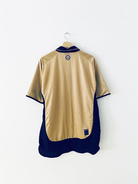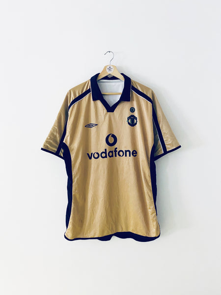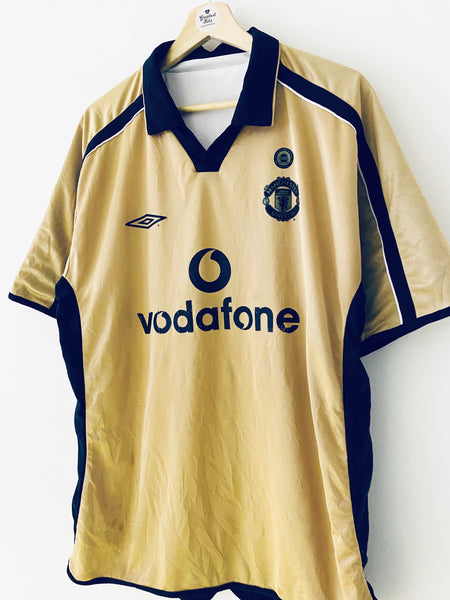 INFO - Away/Third shirt as worn in the club’s centenary season. Man Utd finished third in the Premier League and reached the Champions League semi final. Players in the squad included Sheringham, van Nistelrooy, Solskjaer, Veron, Beckham, Keane