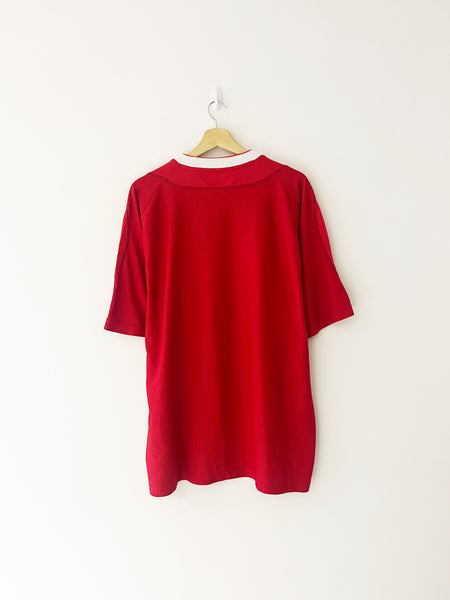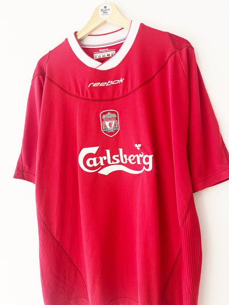 INFO - Home shirt as worn as Liverpool finished 4th and 5th in respective Premier League campaigns under manager Gerard Houllier. The side won the 2002/03 Worthington Cup, beating Manchester United 2-0 in the final. Players in the squad included Gerrard, Hyypia, Baros, Heskey, Hamann, Riise