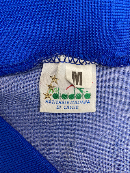 INFO – Home shirt as worn by the hosts of the 1990 World Cup. The side reached the semi finals, losing to Argentina on penalties. Players in the squad included Bergomi, Baresi, Schillaci, Ancelotti, Altobelli, De Napoli, Baggio