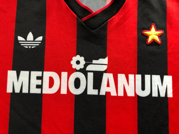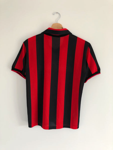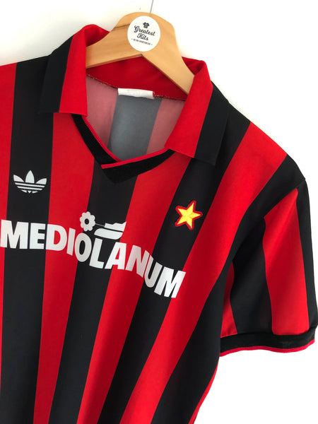 INFO – Home shirt as worn as AC Milan came 2nd in Serie A and reached the semi finals of the Coppa Italia under manager Arrigo Sacchi. The side did win the Intercontinental Cup, beating Paraguayan side Olimpia 3-0. Players to wear the shirt include Ancelotti, Baresi, Albertini, Gullit, Rijkaard and van Basten