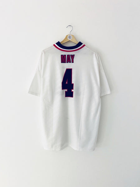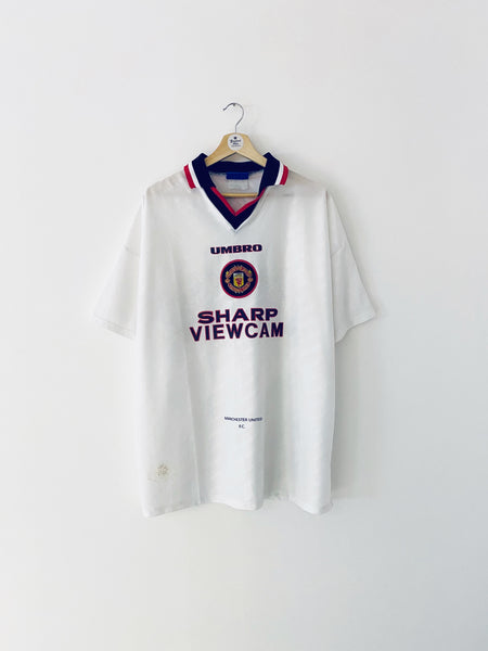 INFO – Away shirt as worn during the ‘96/97 season as Man Utd won the Premier League and reached the Champions League semi finals. Defender David May played 39 games in all competitions over the campaign