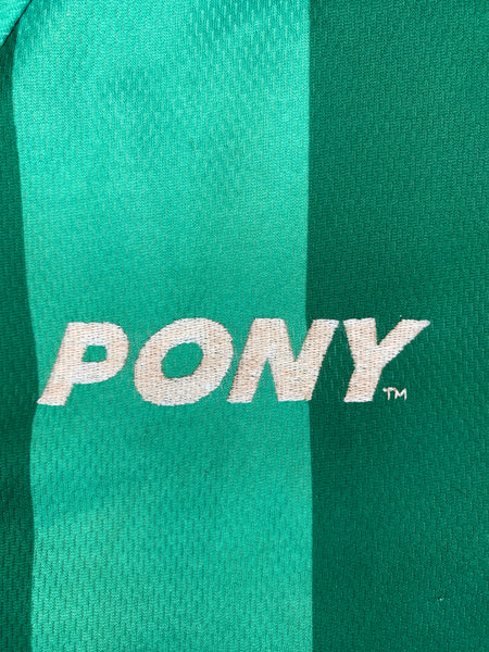 FEATURES - Club crest and Pony logo are stitched, sponsor is printed within the material, official felt Pony player print to reverse