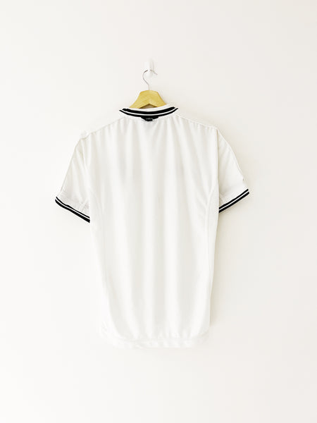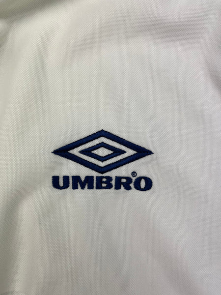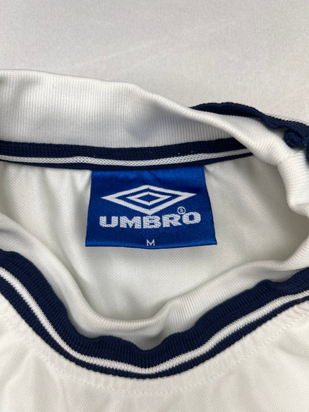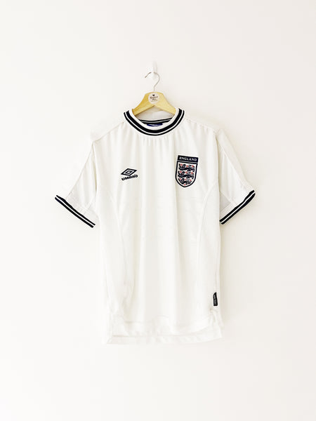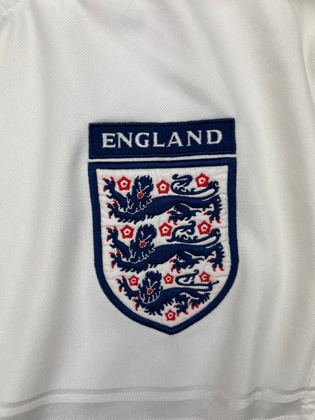 INFO – Home shirt as worn when England qualified for Euro 2000 after beating Scotland in a play-off. England failed to escape from a very tricky group at Euro 2000. Players in the squad included Scholes, McManaman, Shearer, Redknapp, Campbell, Ince