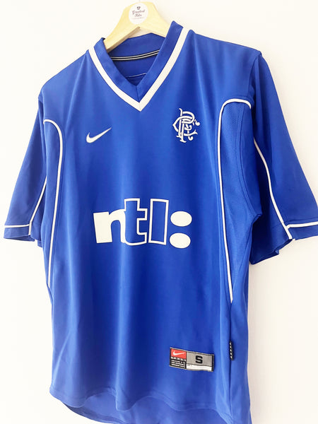 INFO – Home shirt as worn as Rangers won the ‘99/00 SPL title and Scottish Cup double under manager Dick Advocaat. Players in the squad included Wallace, Albertz, Amoruso, Kanchelskis, Reyna, Hendry