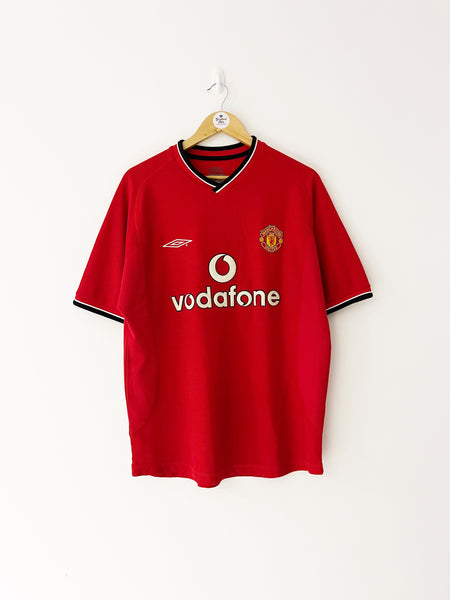 INFO - Home shirt as worn as Man Utd won the Premier League title for the third year in a row in 2000/01 and reached the Champions League semi final in the following campaign. Players in the squad included van Nistelrooy, Giggs, Beckham, Scholes, Blanc, Veron