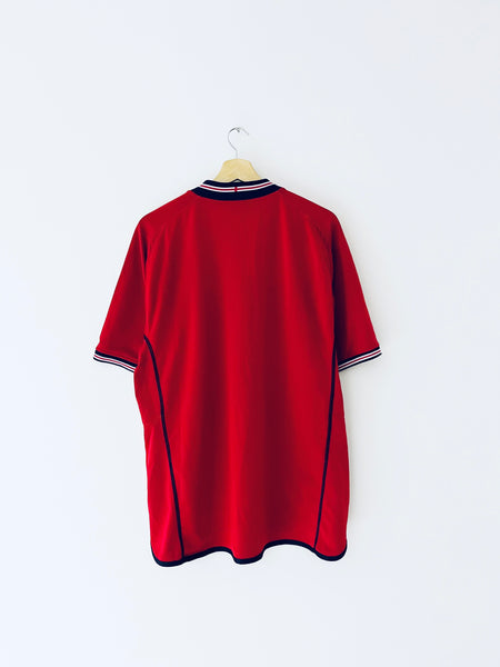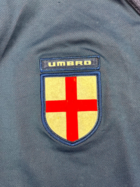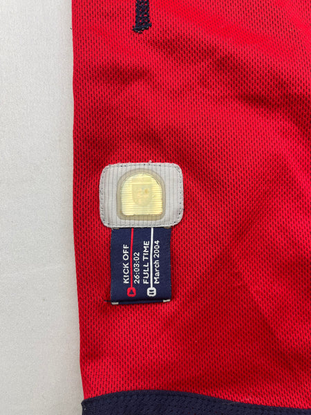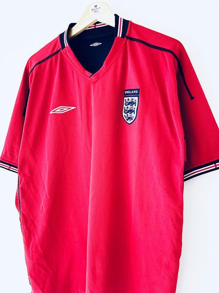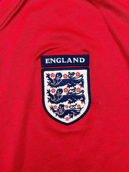 INFO - Away shirt as worn as England reached the quarter finals of the 2002 World Cup. Players in the squad included Beckham, Owen, Heskey, Scholes, Campbell