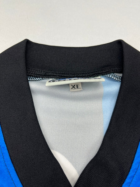 CONDITION - Excellent. Smooth material feel with bright colours. Badges, sponsors and rear print are perfect. Just a couple of tiny single pulls. Overall 9/10