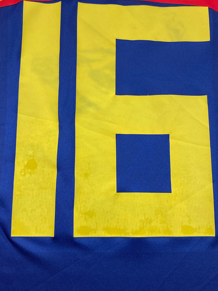 FEATURES – Club crest is stitched. All other details are printed. Small #16 written in pen underneath the size label