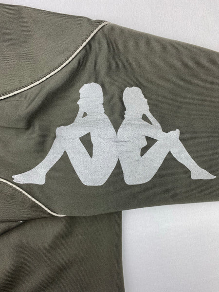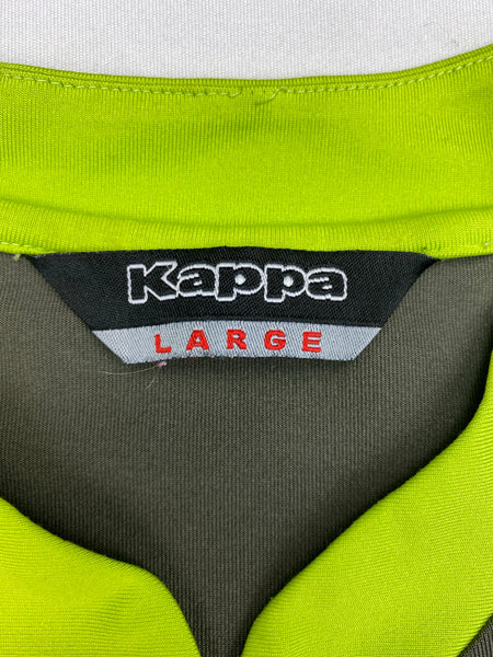 CONDITION – Very good. Smooth material feel with bright colours. Club crest and chest Kappa logo are pristine. Noticeable wear to the Kappa sleeve logos. Light wear to the sponsor (see photos for close ups of damage). Overall 7/10