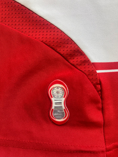 CONDITION - Excellent. Superb material feel with bright colours. Badges and sponsor are pristine. A couple of tiny single pulls. Overall 9/10