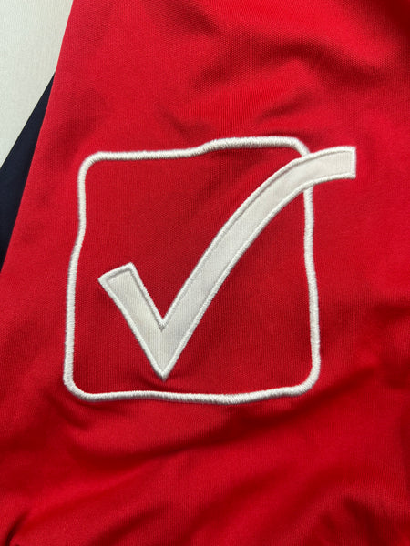 CONDITION – Excellent. Nice material feel with bright colours. Badges and sponsor are pristine. A couple of tiny pulls. A faint mark on the number print (see final photo for a close up). Overall 8.5/10