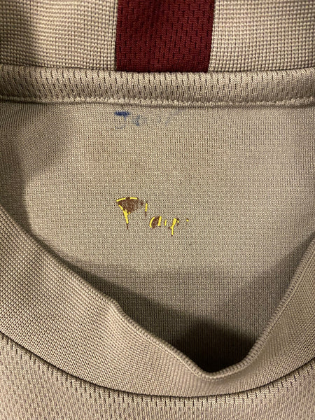 CONDITION – Excellent. Nice material feel with bright colours. Badges and the sponsor are superb. Printed size details have mostly worn away (pit to pit 22”). Overall 9/10