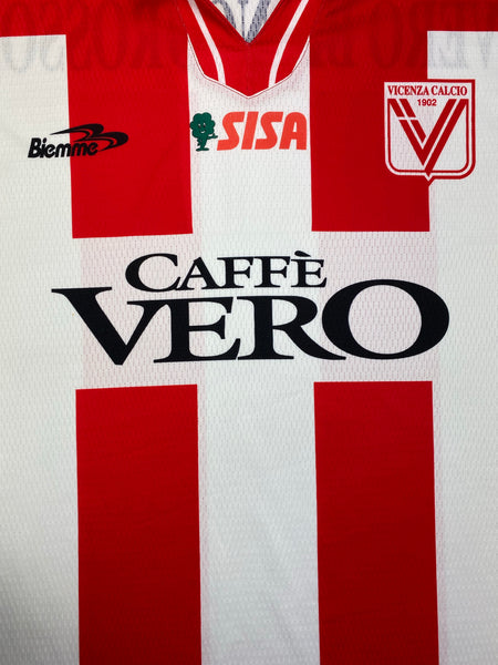 INFO – Home shirt as worn as Vicenza finished 17th in Serie B and were relegated to Serie C1. Players in the squad included Scwoch, Rantier, Cristallini, Crovari, Vitello