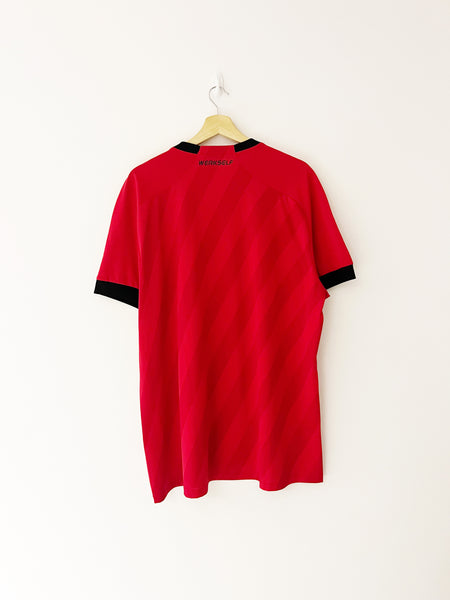 INFO – Home shirt as worn as Leverkusen finished 5th in the Bundesliga and runners up in the DFB-Pokal. Players in the squad included Havertz, Tah, Wirtz, Paulinho, Diaby