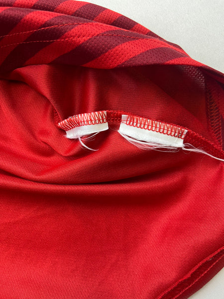 CONDITION - Excellent. Smooth material feel with bright colours. Badges, player print and sponsor are perfect. Two tiny single pulls. Labels have been cut out but all other details are correct. Overall 9/10