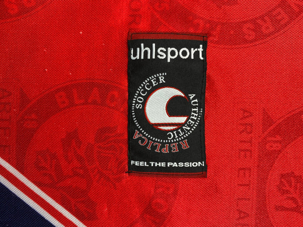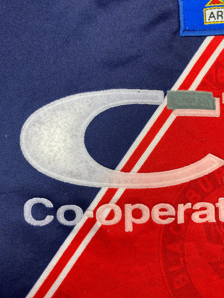 CONDITION - Very good. Bright material colours. Badges are perfect. Slight fade to the sponsor. Quite a few very tiny pulls. Size label has been removed (pit to pit measures 24”). Overall 7/10