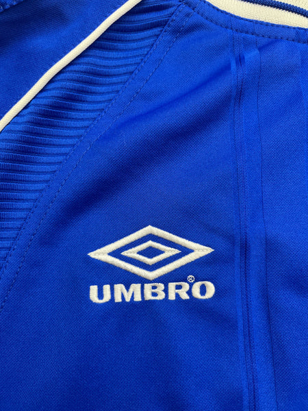 INFO – Home shirt as worn as the side won the last FA Cup Final at the old Wembley Stadium, beating Aston Villa 1-0. Players in the squad included Zola, Weah, Deschamps, Desailly, Poyet, Leboeuf