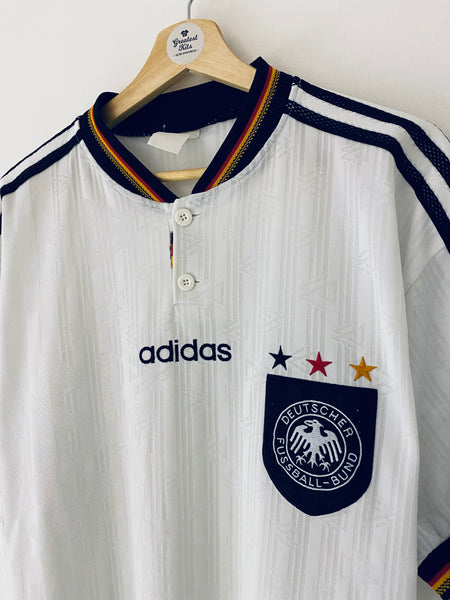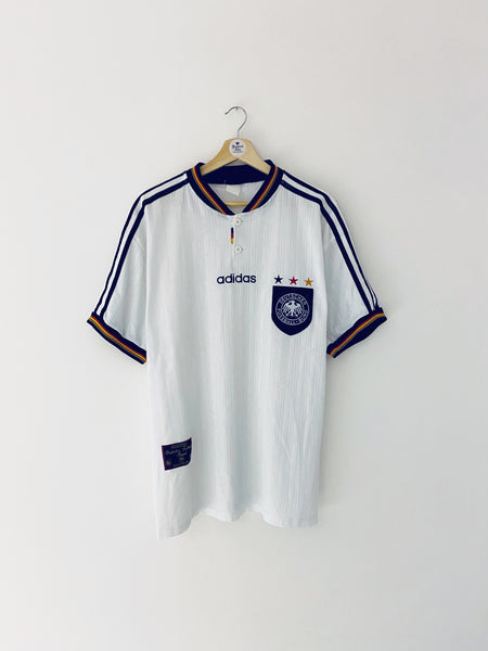 INFO – Home shirt as worn as Germany won Euro 1996, beating Czech Republic in the final with a golden goal. Players in the squad include Klinsmann, Bierhoff, Sammer, Moller, Helmer, Kuntz