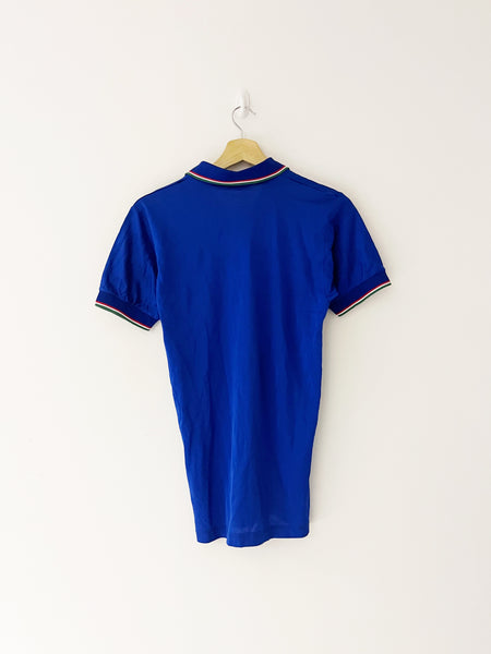INFO – Home shirt as worn by the hosts of the 1990 World Cup. The side reached the semi finals, losing to Argentina on penalties. Players in the squad included Bergomi, Baresi, Schillaci, Ancelotti, Altobelli, De Napoli, Baggio