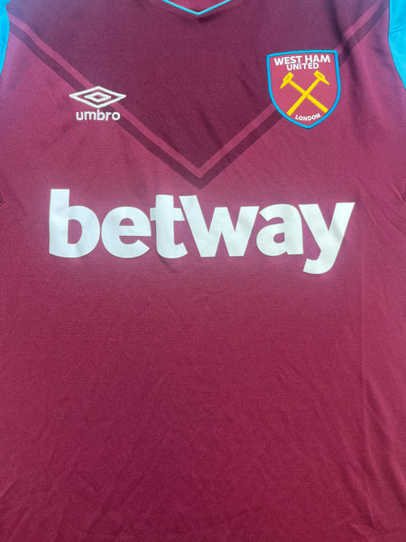 INFO – Home shirt as worn as West Ham finished 13th in the Premier League and reached the quarter finals of the league cup. Players in the squad included Arnautovic, Zabaleta, Rice, Antonio, Noble