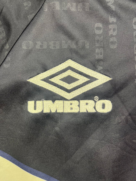 CONDITION - Very good. Smooth materail feel with bright colours. Badges are perfect. Rear Umbro logo is superb. A couple of small pulls and a few tiny single pulls (see photos for close ups). Overall 8/10