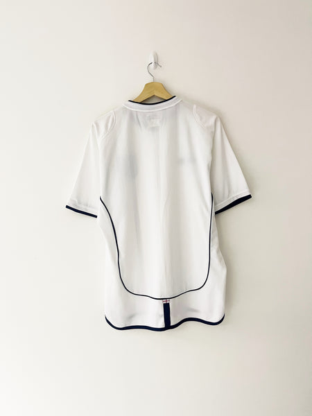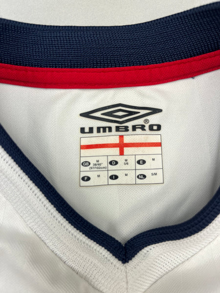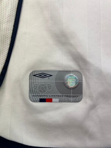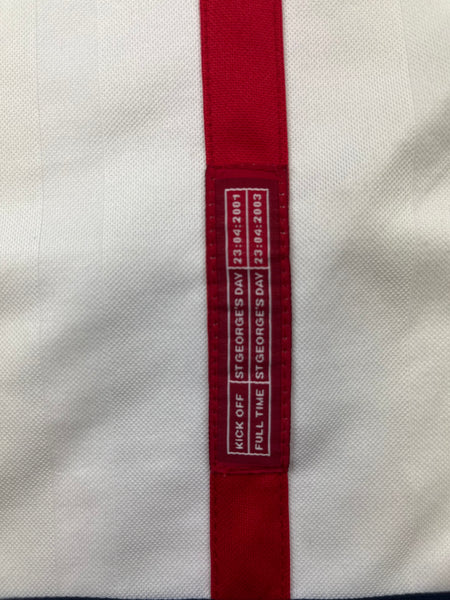 INFO – Home shirt as worn by England under new manager Sven-Goran Eriksson and most famously remembered in the incredible 5-1 win over Germany in Munich. Players in the squad included Beckham, Campbell, Owen, Gerrard, Scholes, Heskey
