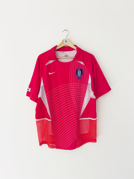 INFO - Home shirt as worn by the co-hosts at the 2002 World Cup. The side topped group D with impressive wins against Poland and Portugal and went on to knock out Italy and Spain, finishing 4th place. Players in the squad included Seol Ki-Hyeon, Lee Chun-Soo, Hwan Sun-Hong, Park Ji-Sung