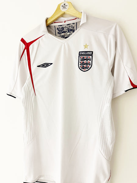 INFO - Home shirt as worn at the 2006 World Cup as England topped Group B and went on to reach the quarter finals, losing on penalties to Portugal. Players in the squad included Lampard, Rooney, Beckham, Gerrard, Ferdinand, Owen