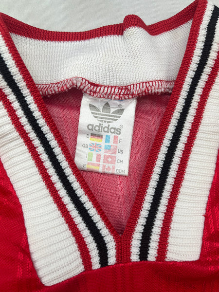 INFO – Home shirt as worn as Turkey competed at Euro 96, they failed to make it through a tough group. Players in the squad included Temizkanoglu, Suker, Ozalan, Ercan, Yalcin