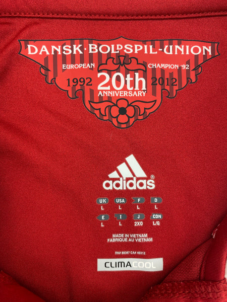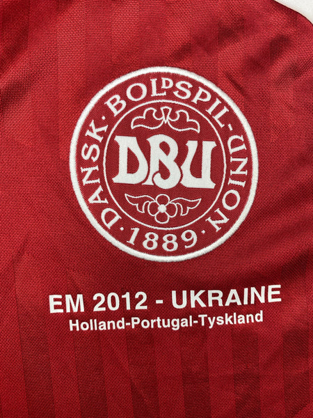 INFO – Home shirt as worn by Denmark at Euro 2012. Despite a win against Holland they failed to make it out of a tough group. Players in the squad included Agger, Bendtner, Kvist, Poulsen, Eriksen