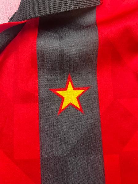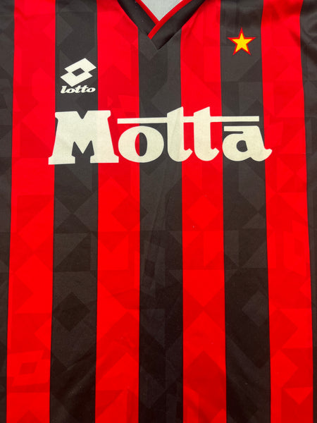 INFO - Home shirt as worn as AC Milan won the Serie A title, only conceding 15 goals. The side also won the Champions League, emphatically beating Barcelona 4-0 in the final. Players in the squad included Massaro, Desailly, Boban, Baresi, Maldini, Albertini