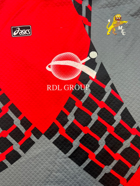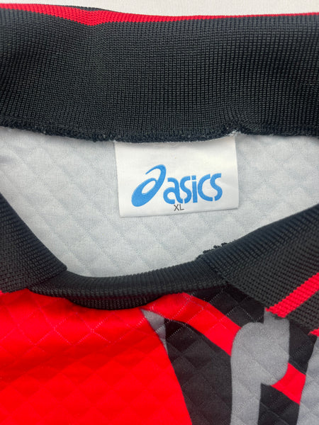FEATURES - Club crest is stitched, Asics logo and sponsor are felt material, stitched number print