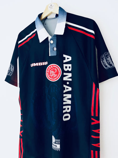 INFO - Away shirt as worn as Ajax won the Eredivisie and KNVB Cup double under new boss Morten Olsen. Players in the squad included Arveladze, Litmanen, Laudrup, Kanu, De Boer
