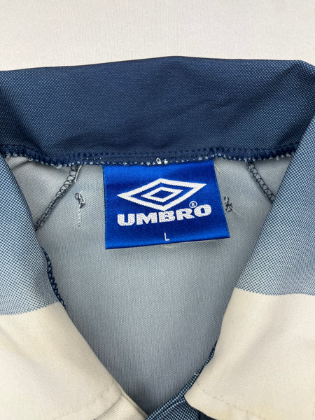 FEATURES - Club crest is stitched, Umbro logo and sponsor are printed within the material