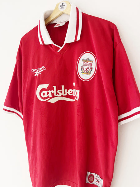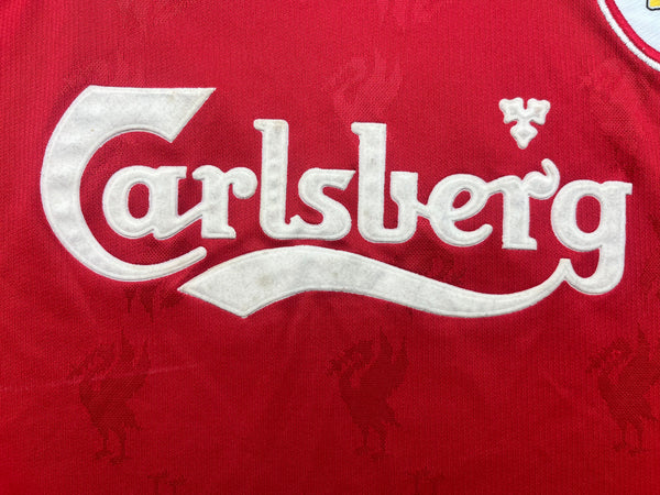 INFO - Home shirt as worn as Liverpool finished 4th and 3rd in respective Premier League campaigns under manager Roy Evans. Robbie Fowler played 72 games and scored 44 goals over the two seasons.